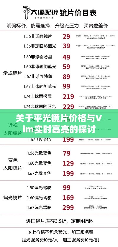 Vim实时高亮,指的是在Vim文本编辑器中,通过特定的设置或插件,实现对语法、关键词等内容的实时识别与高亮显示,它能够帮助用户快速定位到代码中的关键信息,从而提高编程效率,而平光镜片价格则涉及到日常生活中眼镜配件的市场定价问题,其价格受品牌、材质、工艺、市场需求等多重因素影响,当这两个概念结合时,可能是在探讨如何将先进的编辑技术与日常用品相结合,以及这种结合可能带来的市场变革和价格变动。