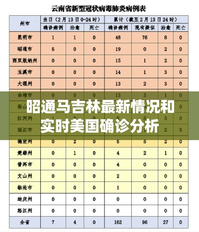 了解昭通马吉林最新情况和实时美国确诊情况时需要保持警惕,通过官方渠道获取准确信息,遵循科学防控措施,以应对潜在的风险。