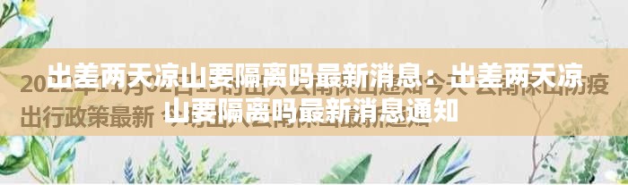 根据最新消息,凉山地区针对出差人员的隔离政策有所调整。以下是具体内容: