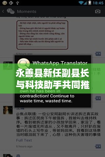 永善县新任副县长及其团队正积极引进先进技术,推动永善县的全面发展,微信英语实时翻译器的引入,为县政府在对外交流中的准确性和效率提供了有力保障,永善县将继续拥抱科技,发挥科技力量在经济发展和社会进步中的重要作用,让我们共同期待永善县在新的领导下取得更加辉煌的成绩。