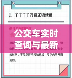 在现代社会,时间就是金钱,效率就是生命,公交车实时查询系统为我们提供了极大的便利,让我们能够更合理地规划出行时间,减少等待和转乘的困扰,通过手机APP、网站或其他查询工具,我们可以实时掌握公交车的到达时间、离站距离等信息,从而做到心中有数,出行无忧。
